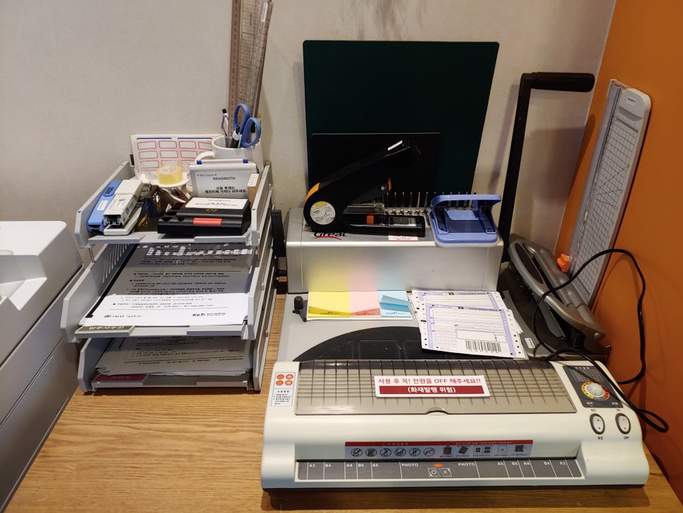 커피와 다과를 즐기며 휴식할 수 있는 휴게공간, 12인까지 사용가능한 회의실, 업무편의를 위한 복사기와 제본기, 복합프린터기를 자유롭게 이용할 수 있습니다.